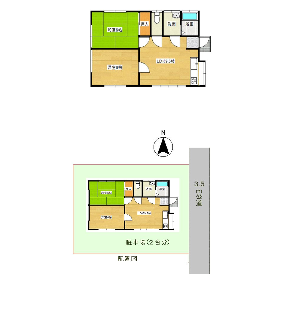 2LDK・木造スレート葺平家建 |