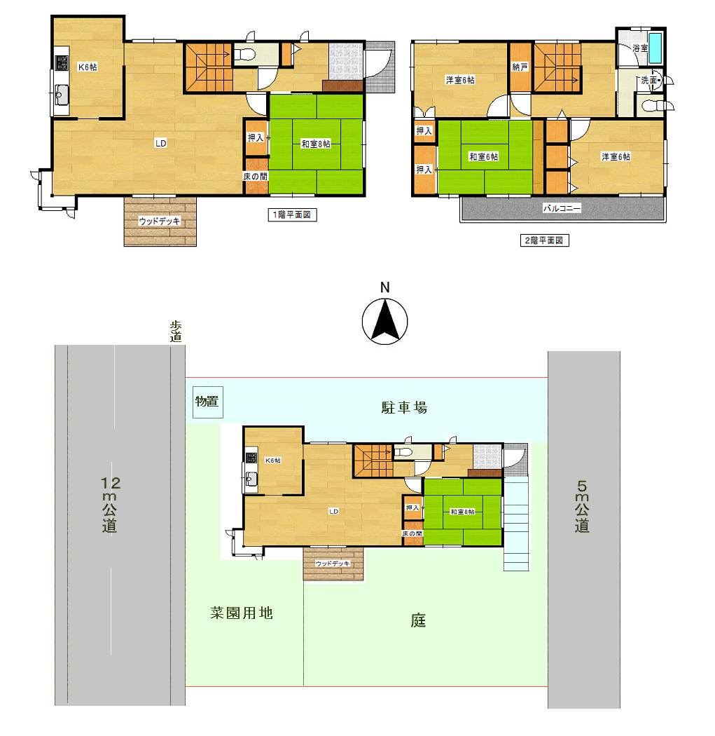 西側12m公道、東側5m公道に接道 |